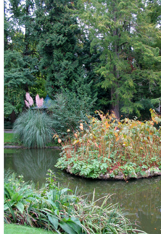 When I am not traveling I live in the old medieval center of Nantes, part of a busy city very near the west coast of France. I will save a more careful profile of Nantes and its history for another day. For tonight I would just like to share with you a few of the sights along the way when I walk to the nearby Nantes botanical garden (jardin des plantes) and arboretum--a lovely park that has been in existence since the early nineteenth century, with many varieties of plants and mature trees from around the world ranged along its winding paths and rock bordered water courses. On our way you can spot glimpses of the neighbourhood's ancient architecture including Nantes' Gothic cathedral and the medieval era chateau of the Dukes of Bretagne (Brittany).